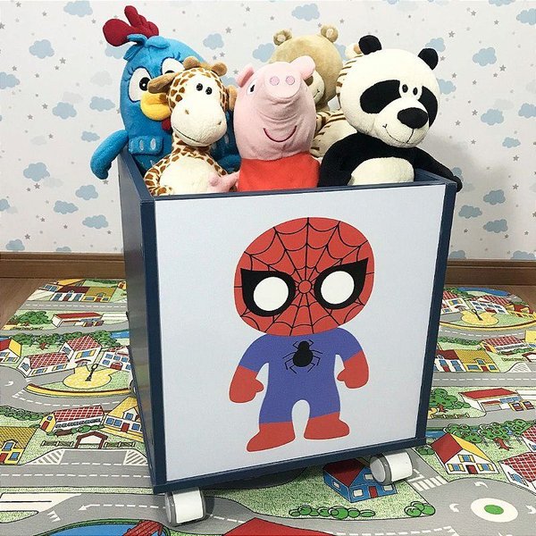 Baú Infantil Organizador Azul Com Rodízio - Homem Aranha