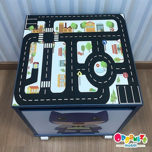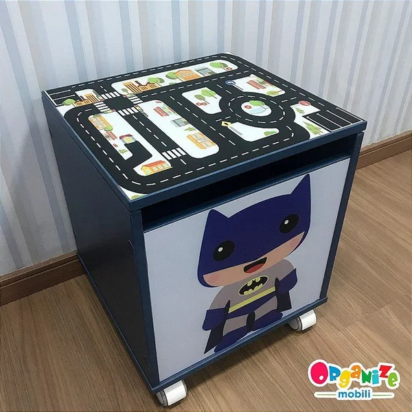 Possui adesivo na parte da frente o que deixa mais bonito e lúdico. Também possui adesivo na tampa feito com película protetora para maior durabilidade. Escolha o tema preferido do seu filho, ele vai adorar ter um baú temático e que combine com seu ambiente. Temos várias opções de temas, consulte - nos!