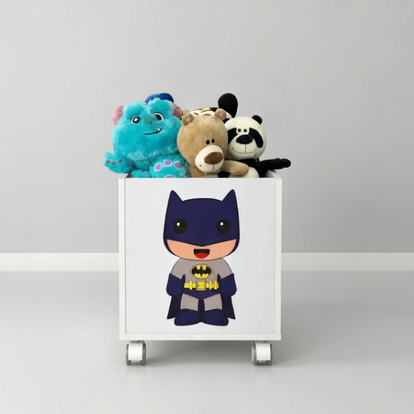Possui adesivo na parte da frente o que deixa mais bonito e lúdico. Escolha o tema preferido do seu filho, ele vai adorar ter um baú temático e que combine com seu ambiente. Temos várias opções de temas, consulte - nos!