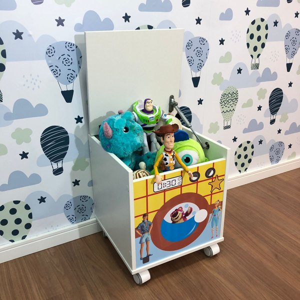 Possui adesivo na parte da frente o que deixa mais bonito e lúdico. Escolha o tema preferido do seu filho, ele vai adorar ter um baú temático e que combine com seu ambiente.