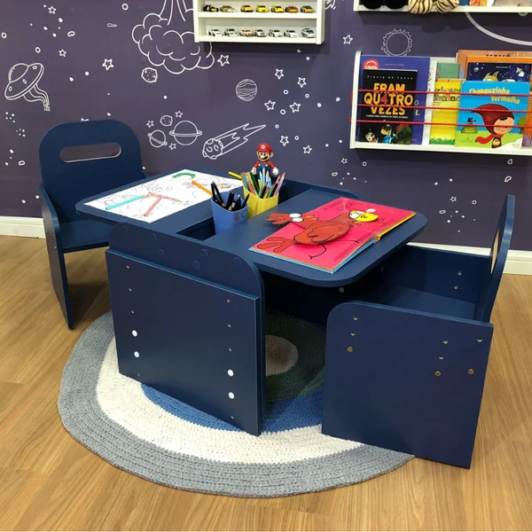 A mesa infantil para duas crianças com regulagem de altura oferece uma série de benefícios para o desenvolvimento das crianças,