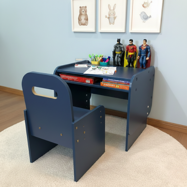 Acompanhe cada fase da infância com conforto, segurança e funcionalidade. Nosso kit com mesa e cadeira infantil possui regulagem de altura em ambos os produtos, adaptando-se perfeitamente ao crescimento da criança. Perfeito para tarefas escolares, trabalhos manuais, momentos de leitura ou até o lanchinho da tarde, este combo é versátil, ergonômico e atemporal. Assim como as crianças, nossos móveis evoluem — crescem junto com elas, acompanhando cada etapa do desenvolvimento e oferecendo sempre a melhor postura e praticidade. Feito com design inteligente e materiais de alta qualidade, o kit é ideal para quem busca um espaço de estudos funcional, bonito e duradouro.