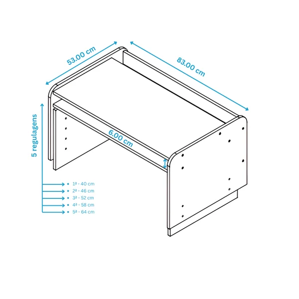 Medidas/ajustes da altura – Mesa Infantil
