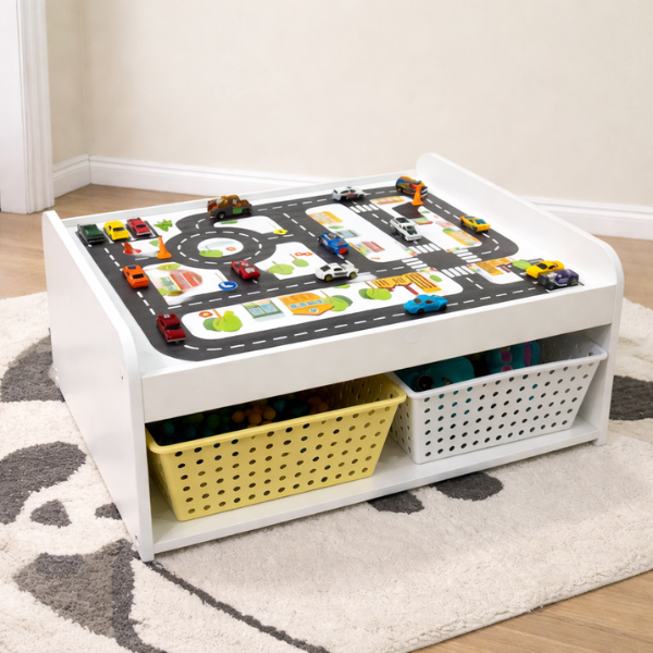 Acelera a diversão com a Mesa Infantil Pista com 4 Caixas! 🏁✨ Um espaço incrível para brincar com carrinhos, criar estradas sem fim e imaginar aventuras sobre rodas. Com quatro caixas organizadoras, tudo fica no lugar — sem perder a emoção!