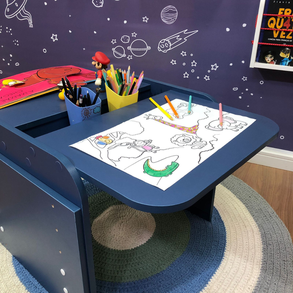O grande diferencial está no nicho central integrado, pensado especialmente para guardar lápis, canetinhas e outros materiais. Isso incentiva a autonomia das crianças e mantém o ambiente organizado, tornando cada atividade mais prática e divertida.