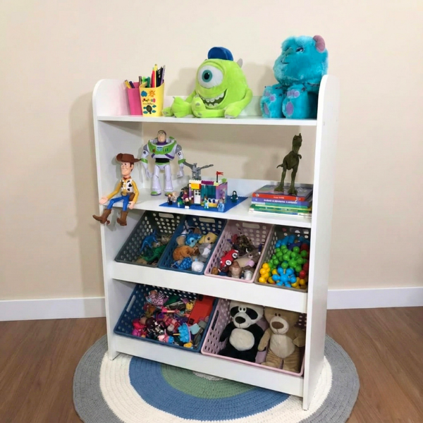 Funcional e encantador, este organizador é um dos nossos campeões de vendas! Com prateleiras e travessas, permite que os brinquedos fiquem expostos e ao alcance dos pequenos, estimulando autonomia, motricidade e independência na hora de brincar. Ideal para compor ambientes infantis com charme e praticidade.
