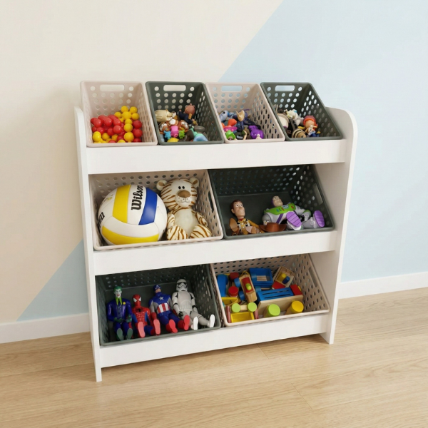 🧸 Organizador de Brinquedos com Cestos Inclinados – Estilo Montessoriano