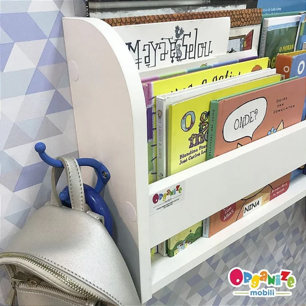 O Organizador de Livros Infantil Montessoriano para Parede com 2 Ganchos da Organize Mobili é a solução perfeita para transformar qualquer parede em um cantinho funcional e educativo. Ideal para espaços pequenos, ele é fixado em uma altura acessível para que as crianças escolham e guardem seus livrinhos com autonomia. A prateleira facilita a organização e estimula o hábito da leitura desde cedo. Os dois ganchos inferiores são um diferencial: além de garantir fixação segura, também servem para pendurar mochilas, sacolas, bolsas ou acessórios do dia a dia, mantendo tudo organizado e ao alcance dos pequenos. Perfeito para quartos infantis, brinquedotecas, escolas e espaços lúdicos.