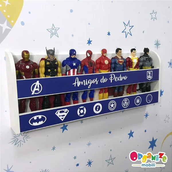 Feito especialmente para armazenar e exibir bonecos e bonecas como Barbies, princesas, super-heróis e vilões, este organizador permite que você adicione o nome do seu filho ou filha, tornando o espaço ainda mais único e encantador.