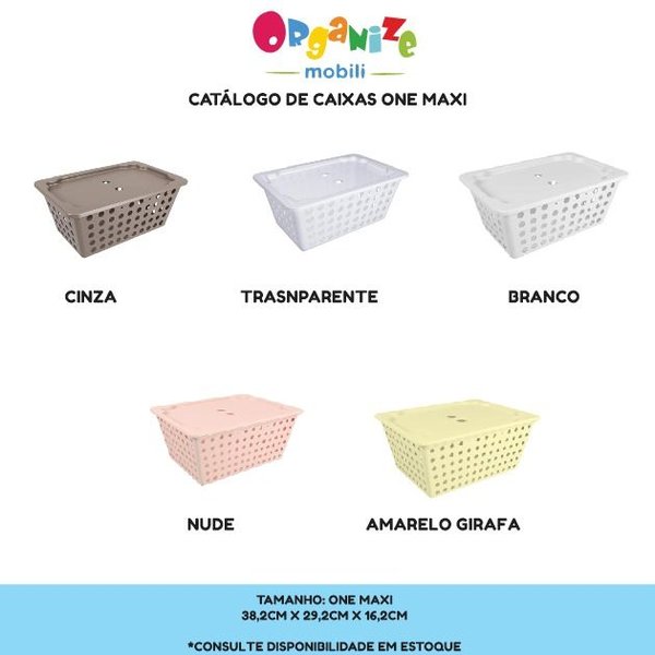 Acompanha ao organizador 4 (quatro) caixas one maxi 2 (duas) caixas one maxi com tampa.