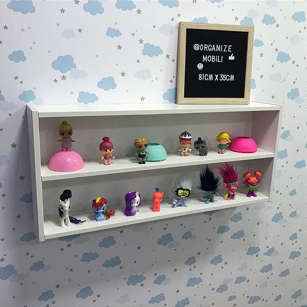 Imagina ter um cantinho especial para organizar todos os bonequinhos e personagens colecionáveis! Super resistente para a diversão diária da criançada e fixado na parede para mais segurança. Ideal para guardar funko pop, lego, LOL e muito mais. Nosso organizador infantil, com nichos e prateleiras duplas, é perfeito para manter os brinquedos arrumados e alegrar o quarto dos pequenos colecionadores.